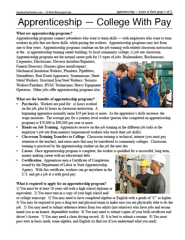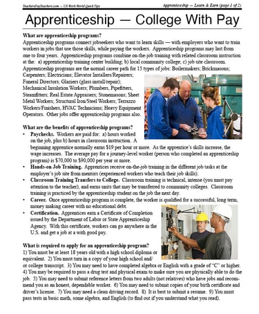 Apprenticeship — College With Pay PLUS Quick Tips Sharing Handout